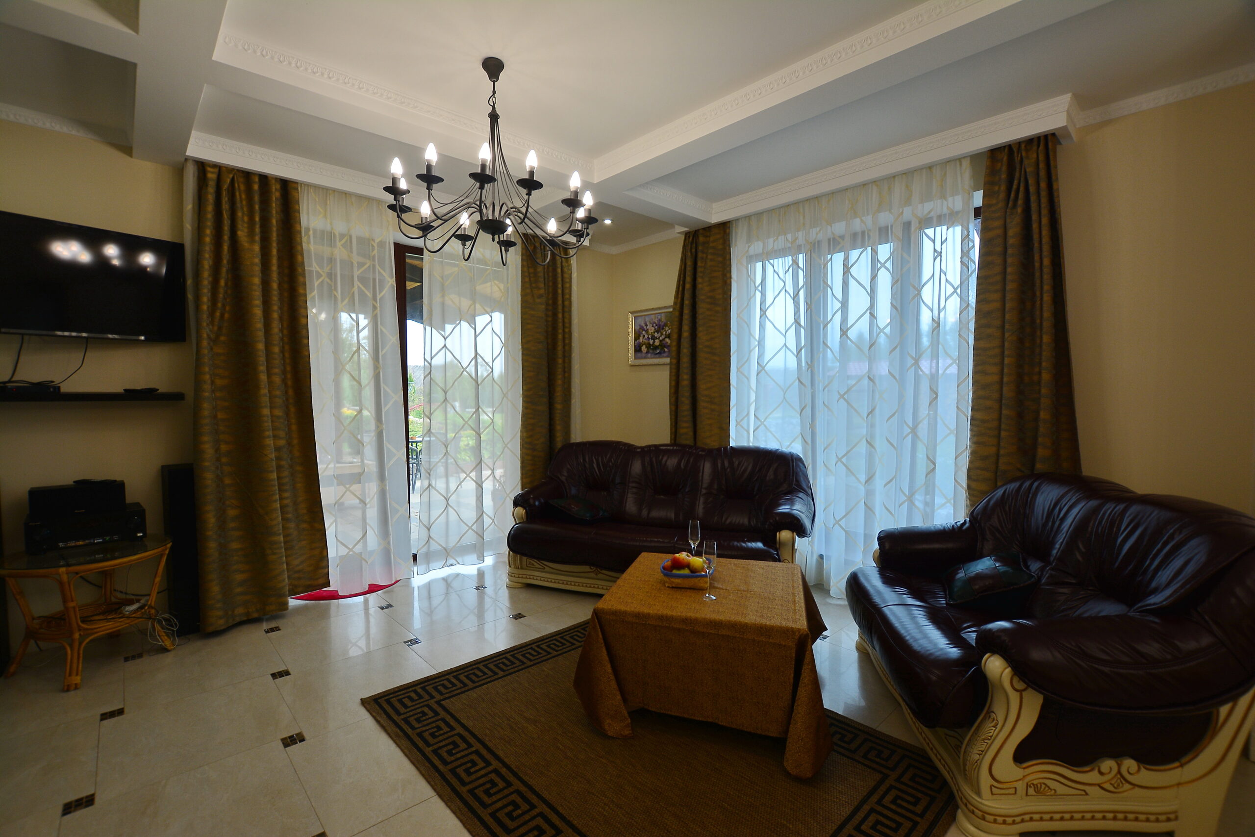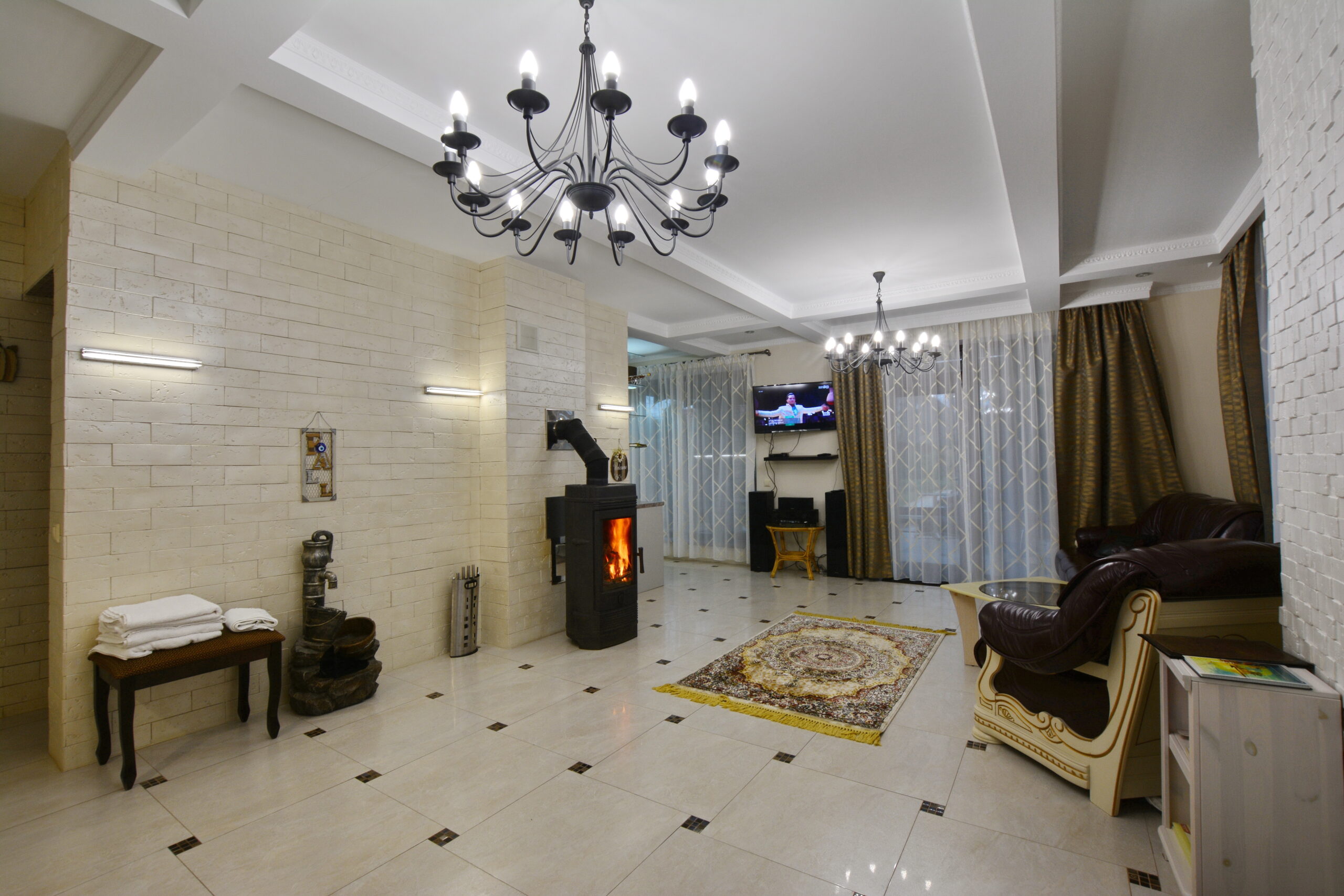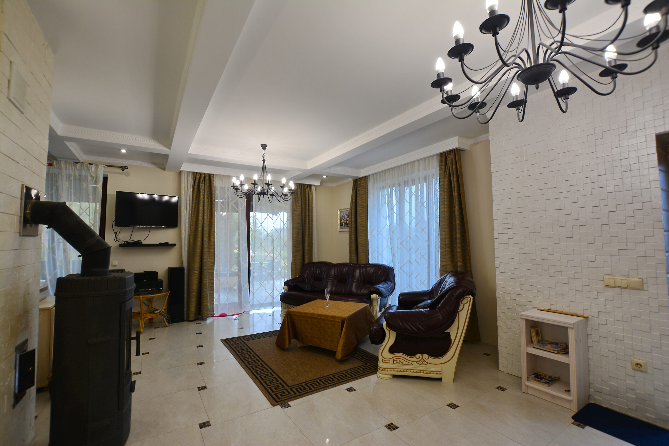 Гостиная – это большая, стильная и уютная комната, где есть всё необходимое для отдыха: камин, мягкая мебель, AV аппаратура, большой телевизор с плоским экраном (220 русскоговорящих спутниковых каналов).