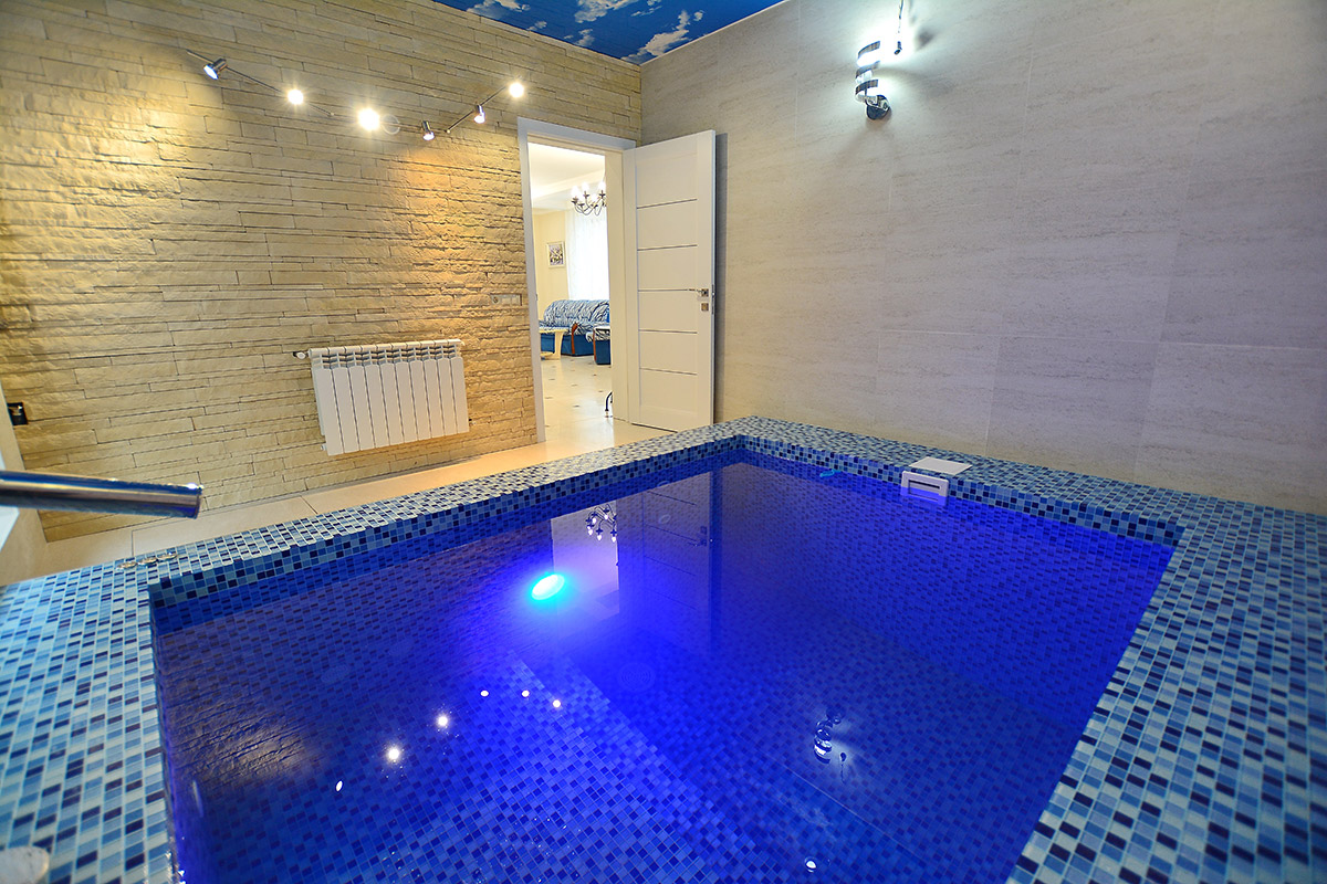 Теплый бассейн, который, благодаря разным уровням воды, подойдет детям и взрослым. Дополнительно вы сможете получить настоящее удовольствие от многочисленных аттракционов: водопадов, гидропушки и гидромассажа.