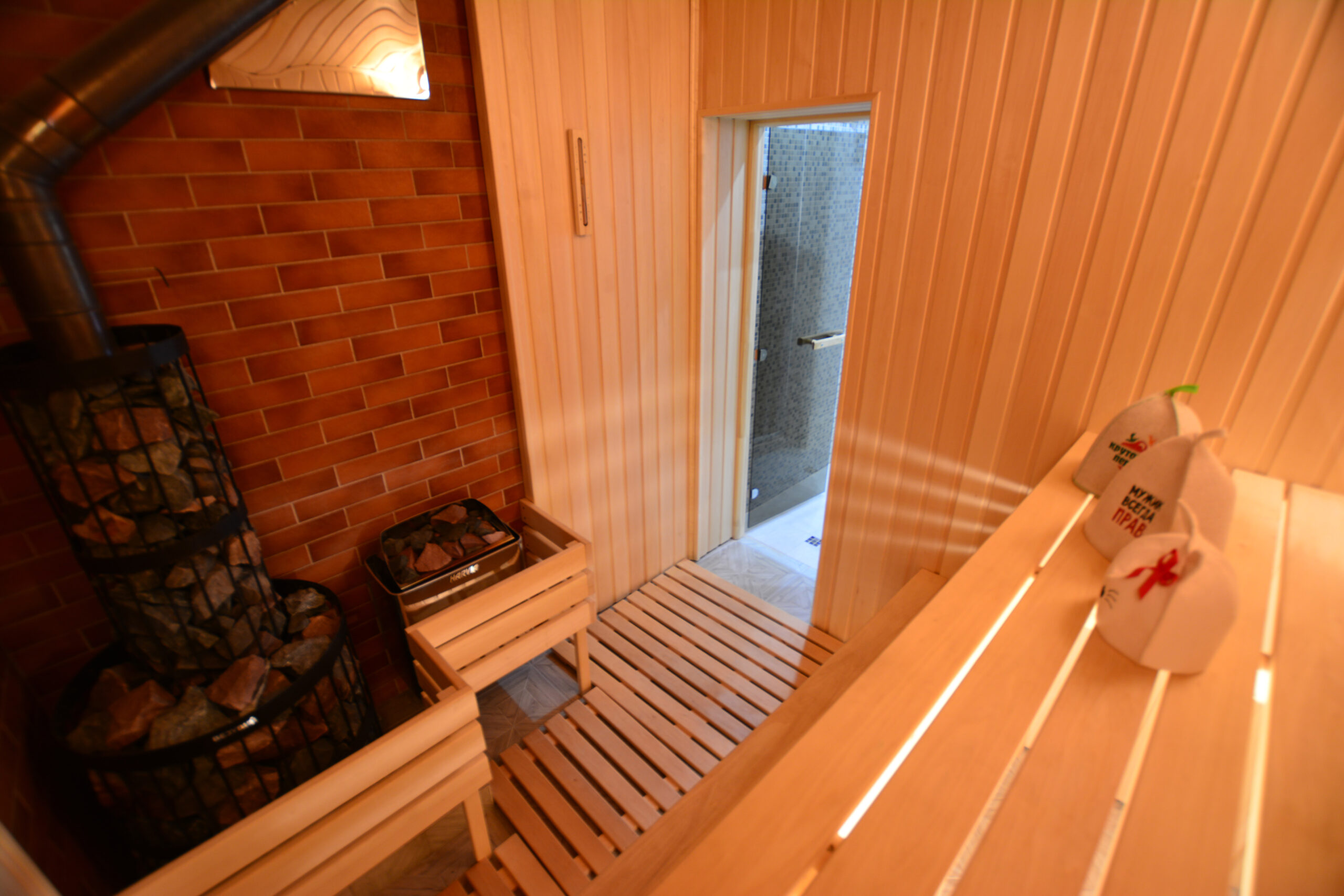 Современная финско-русская парная оборудована 2-мя печами: на дровах и электрической, чтобы постоянно и легко поддерживать нужную вам температуру. В дополнение к вашим услугам большой выбор аромамасел.